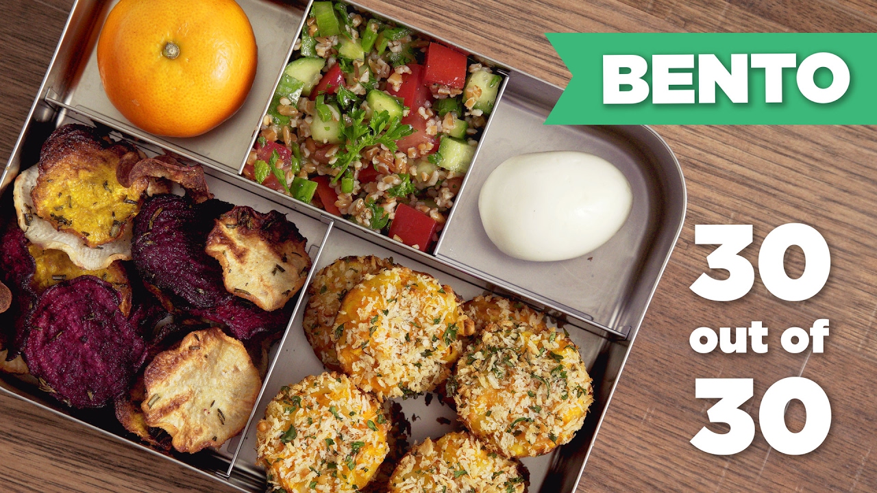 FINAL episode of the Bento Box series! Healthy vegetarian lunch! Tasty vegetable chips, tabouleh, & healthy mac and cheese bites!