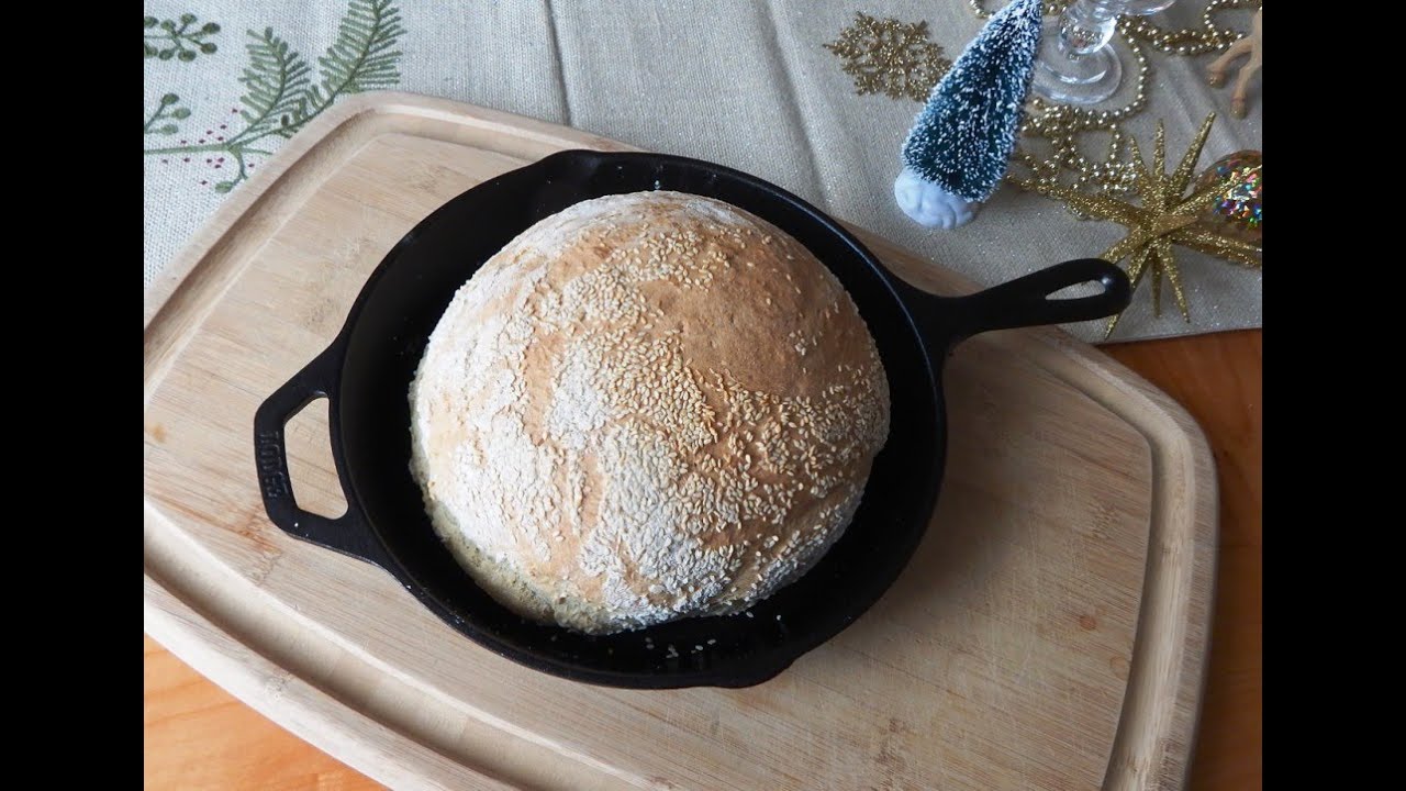 No Dutch oven… no problem. You don’t need expense bakeware. You can bake no-knead bread in a skillet. This video uses the “Turbo” method (ready to bake in 2-1/2 hours) and “hands-free” technique (I won’t even touch the dough) to make no-knead bread. I’ll even garnish the loaf with sesame seeds without touching the dough. The turbo method and hands-free technique it will expand the world of no-knead bread making, stimulate your imagination, and please your palate.