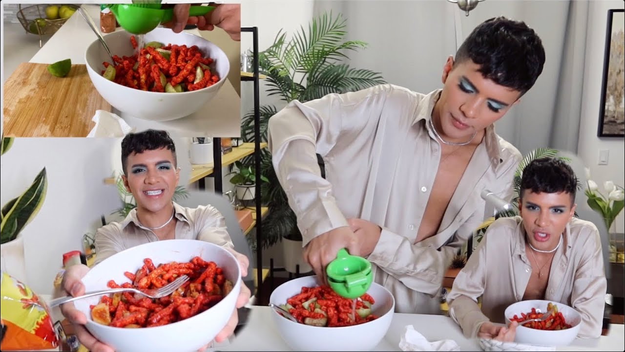 Lets cook everyone! About a week ago week ago I showed on my IG stories (@gabrielzamora) how I’ve recently been making my hot cheetos. I looooove hot cheetos with lime and tajin and I also love cucumber with lime and tajin so I decided to combine it. I thought that It could be a healthier option cus if not I do just hotcheetos tooo many times that I know its not healthy but I can’t stop. So by adding half cucumber then its maybe healthier??? Or not as bad? IDK but I was glam and gonna make it anyway so wanted to film it and catch up as to how my Miami trip just went. I make the food until the 7:00 mark and after that its a super chatty af mukbang where I eat this creation. So if you wanna make the dish with me and chat as we both make it….honestly why not?! Lemme know if you like this video everyone 😘