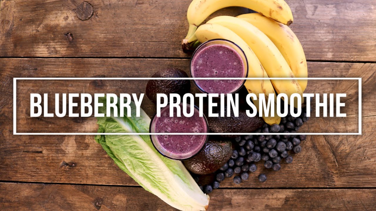 This is a super healthy protein smoothie. To make this vitamin and protein-rich vegan blueberry smoothie you need water, almond milk, avocado, blueberry, protein powder, banana, and romaine lettuce. This healthy smoothie is a perfect way to start a day.