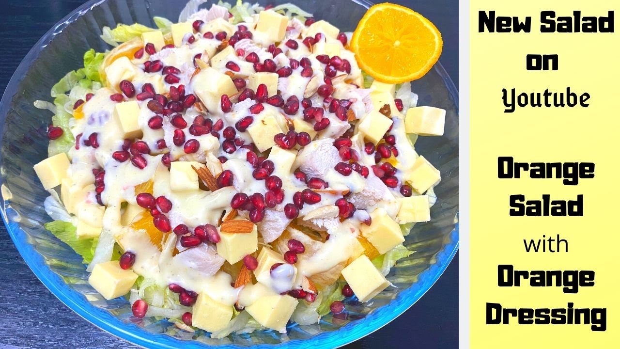 Special Orange Salad with tasty Orange dressing which you never taste before. Tangy oranges with healthy cottage cheese, nutty almonds, with chicken with addition of pomegranate. You will love the taste of dressing with fresh orange juice.