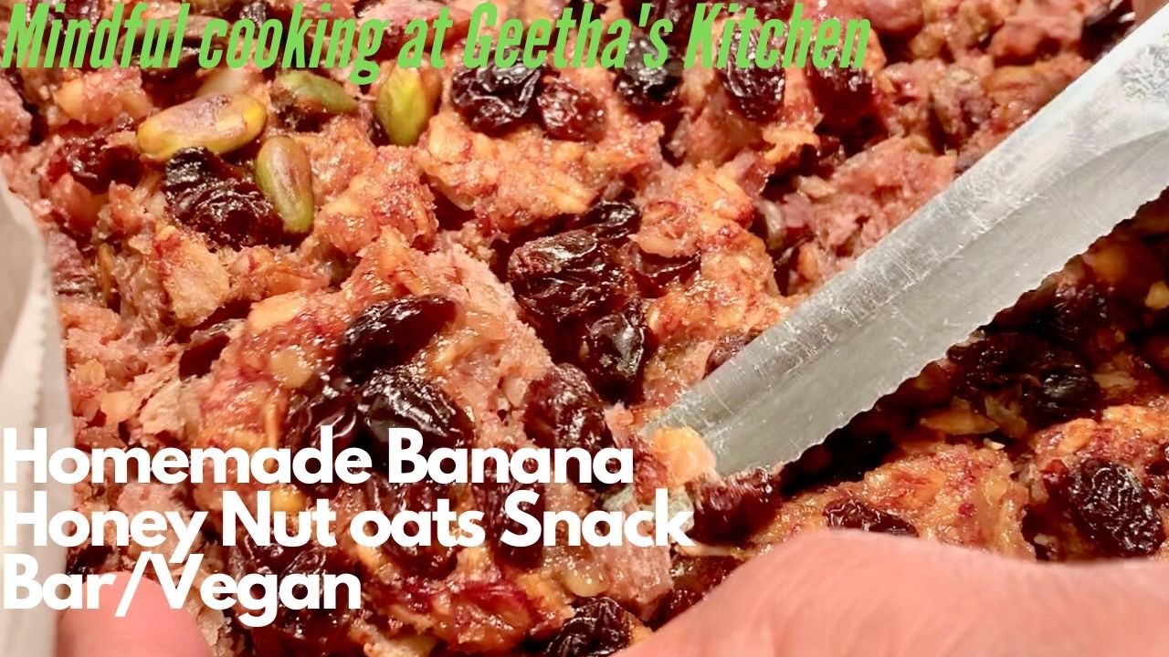 This video has step by step direction of how to make Banana Honey Oat nut Snack Bar. A quick Easy Healthy Recipe to make a protein rich Vegan Energy bar for your snack time. An effective way of making use of your over ripen bananas. This is very soft and a good snack choice for all age groups.