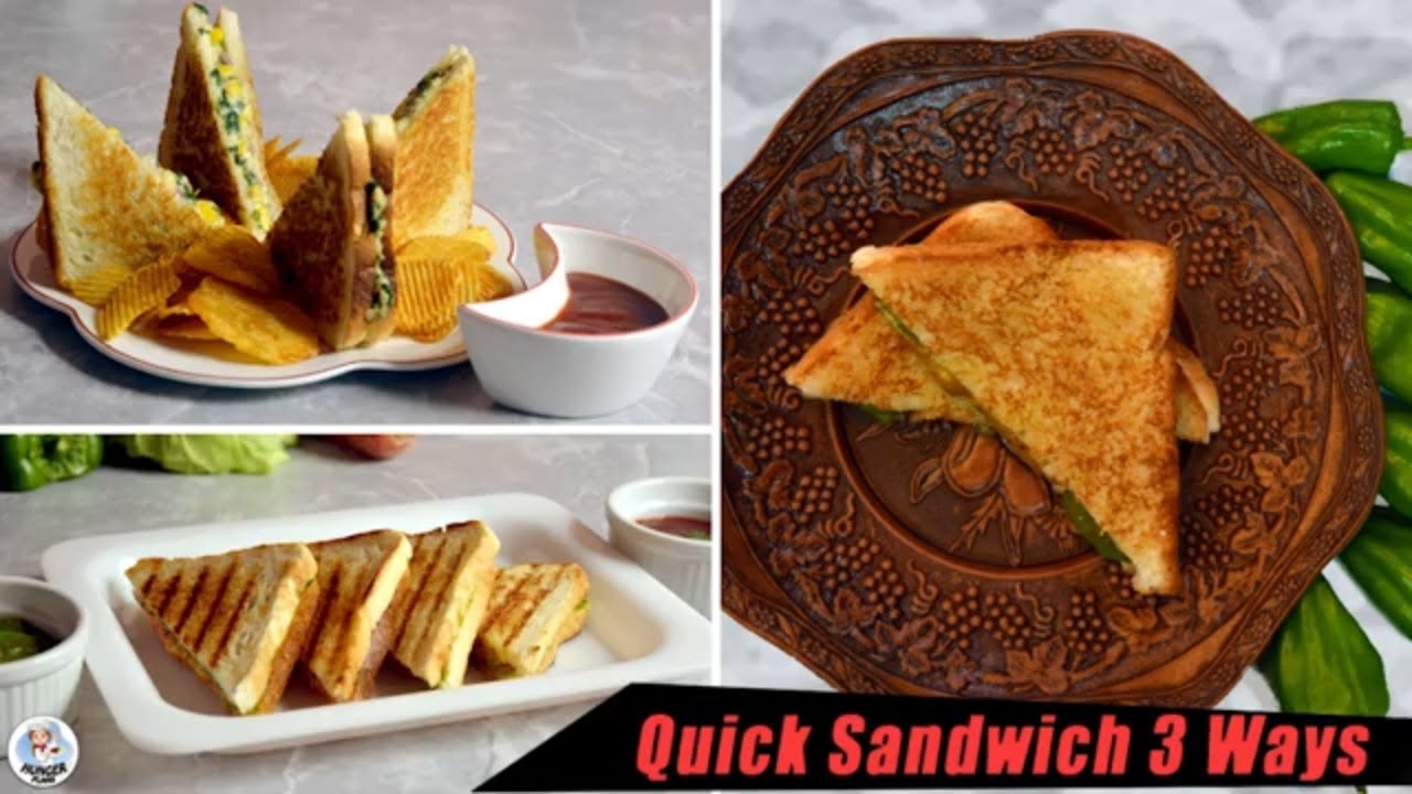 Sandwich 3-Ways | 3 Quick & Easy Sandwich Recipes | Cheesy Corn & Spinach | Veg Mayonnaise | Chilly Popper Sandwich | Healthy Sandwich Recipes | 3-Way Tawa Bread Sandwich Recipes | Hunger Plans