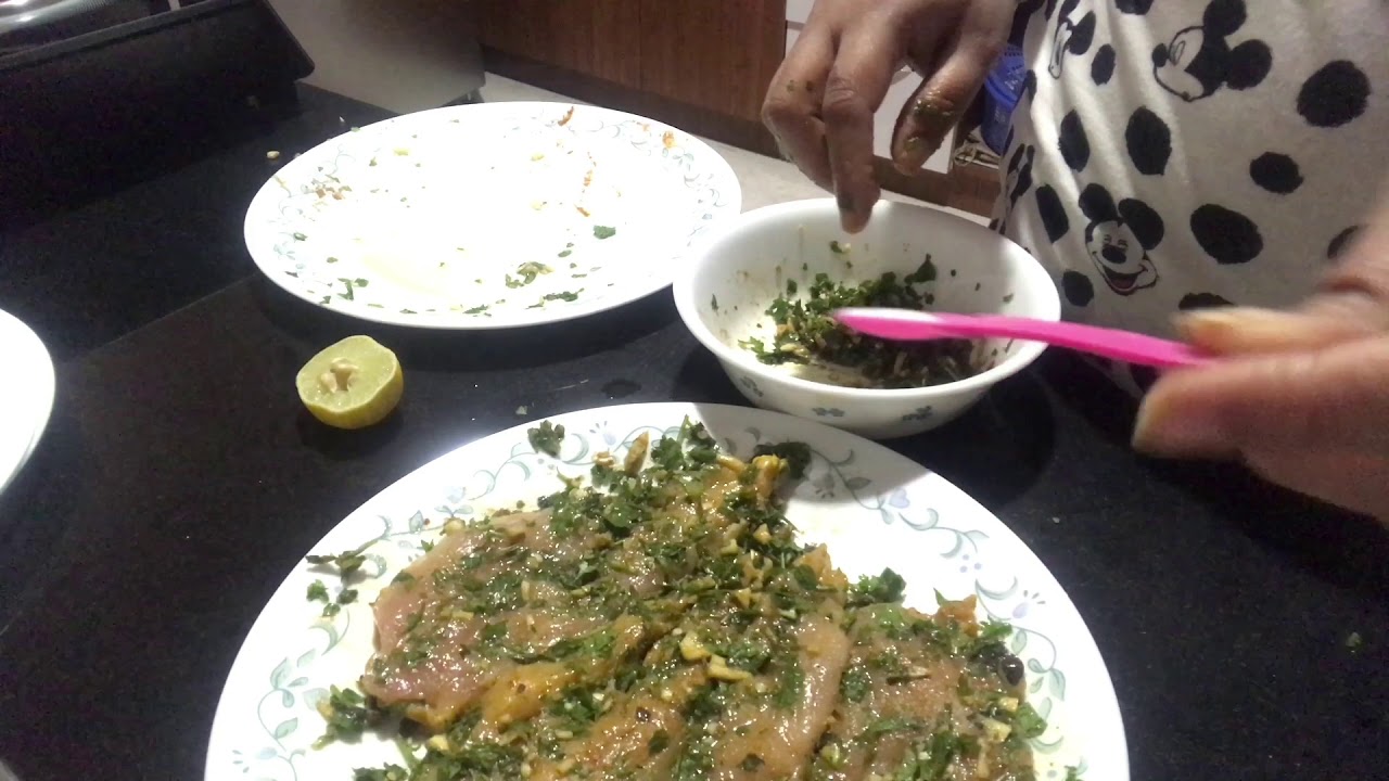 * Rub it with salt, pepper,lemon juice curry powder garlic and herbs together and marinate for minimum 2hrs /upto overnight. Finally add little oil in the pan and place the chicken and grill it .