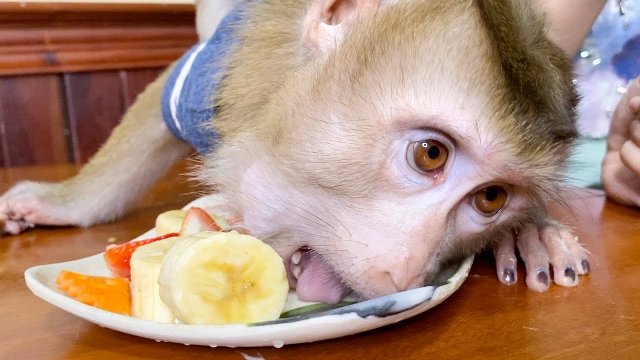 5. Baby Monkey | DouDou No Eat Banana But Eat Food Mom Cooked :