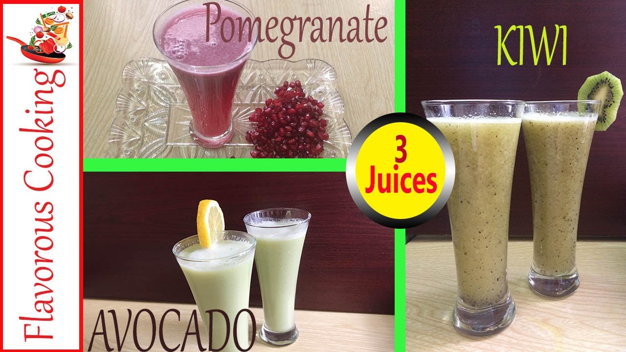 3 Healthy Juice Recipes | Pomegranate Juice, Kiwi Juice, Avocado Drink