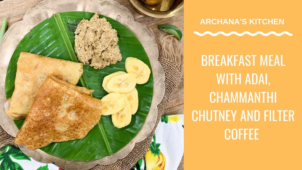 Breakfast being the most important meal of the day should be healthy and full of nutrients. Breakfast means ‘breaking the fast’ and we should keep in mind that we eat something that is full of nutrition and is also tasty. Here, we have an easy to make, high protein and delicious South Indian Breakfast Meal Plate which has recipes such as Adai, Kerala Thenga Chammanthi and Filter Coffee. We have also served Nendran Banana along with this meal.