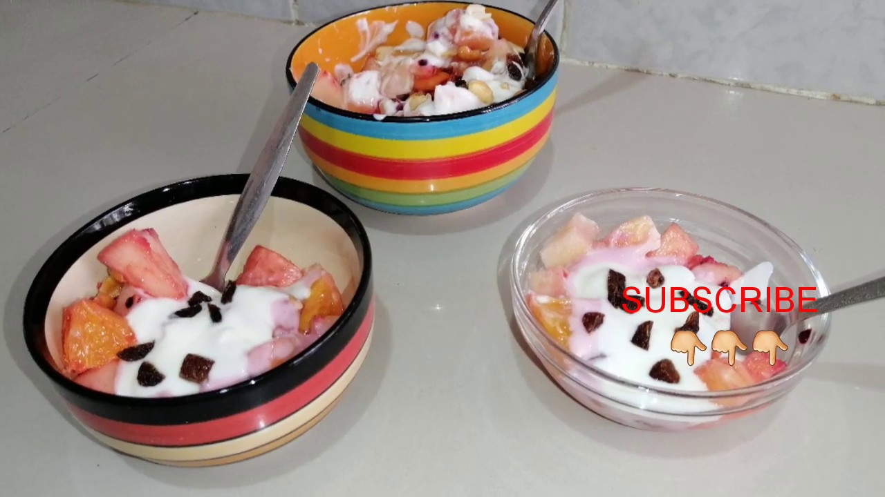 You can never go wrong with a fruit salad with nuts.it keeps you full all day and you wont feel the need to snack in between your meals. Plain yogurt helps to balance the sugar and keep it all the way healthy