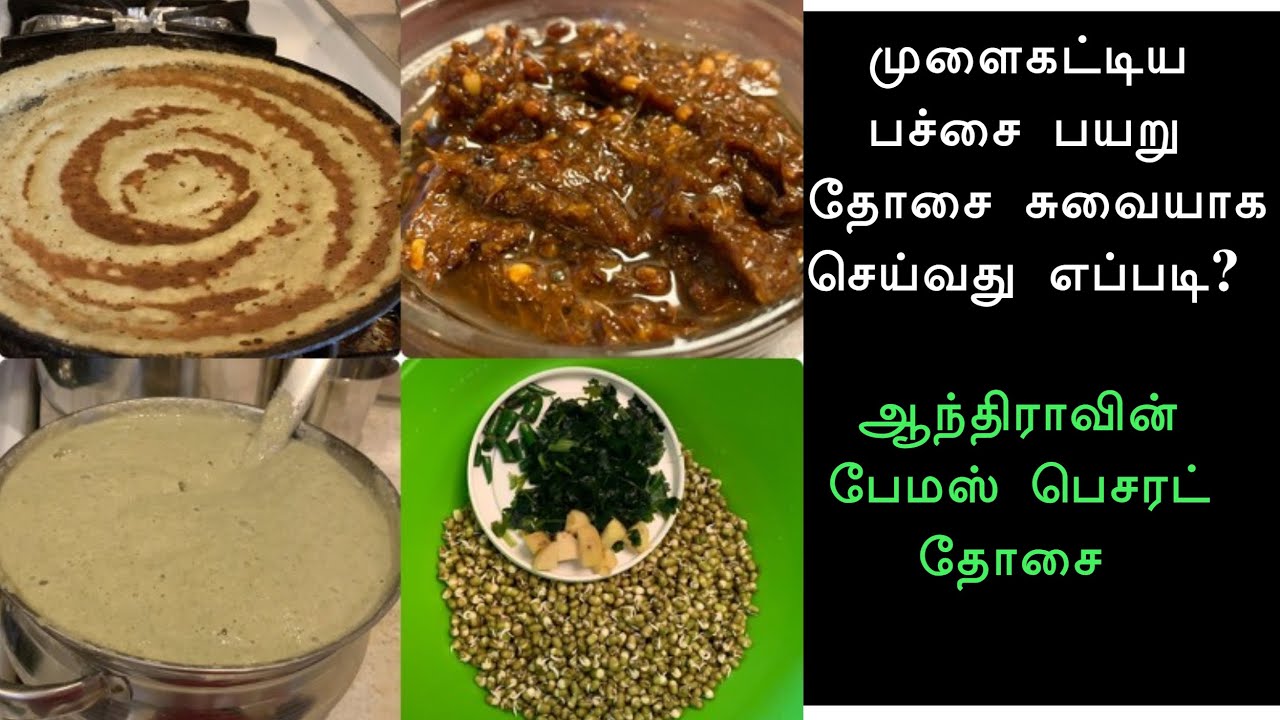In this video we will see how to make Sprouted Moong dal /Pachai Payaru ( Pesarattu ) Dosai with healthy Ginger Chutney.