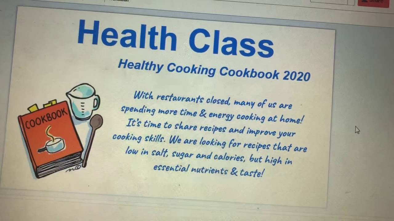 This video is to explain today’s assignment. We’re making a class “cookbook” of healthy recipes. You will upload information to 2 slides to share with your classmates! Have fun with this.
