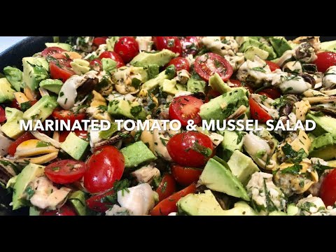 In a deep frying pan, add the olive oil and fry the spring onion lightly, add the mussels , combine and turn off the heat. Add the tomatoes, avocado, lemon juice, herbs and mix carefully. Ready to serve with a slice of french stick