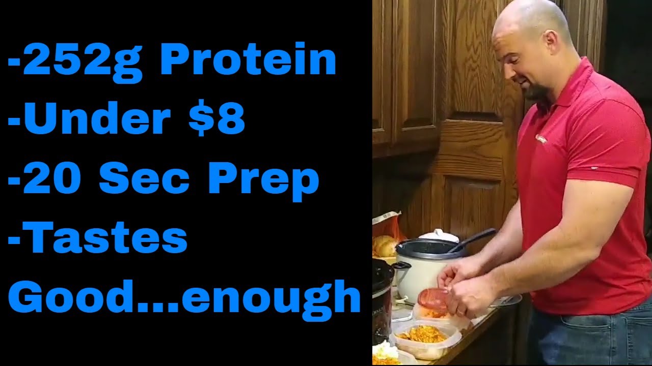 Is it healthy? A heck of a lot healthier than most meals you can get for $1. Split 5 portions, it’s 50g of protein and about 50g of carbs (with the rice I used), around 3 g fat. Yeh, it’s healthy…people don’t eat enough protein, brah.