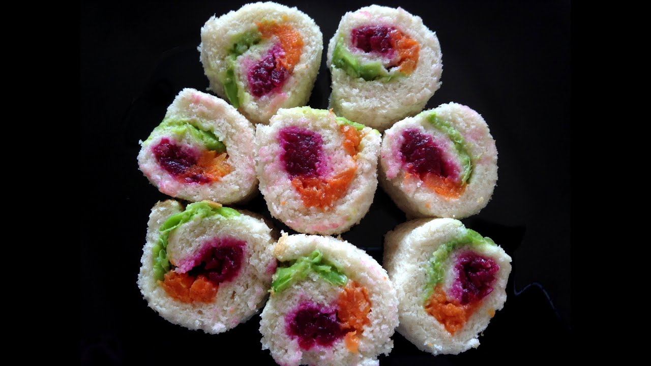 Rainbow Sandwiches are a favorite Sri Lankan (Formerly known as Ceylon) party food. So easy to make, it’s tempting and colorful. This recipe has the same influence but I have substituted Lettuce with boiled and mashed frozen Green Peas.