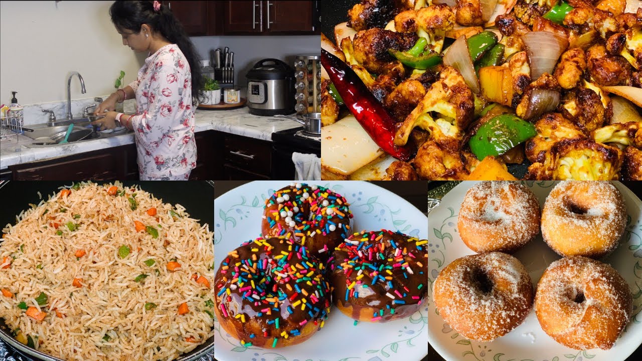 Restaurant Style Veg Fried Rice/No Fry Healthy Chilli Gobi/Indo Chinese Recipe/Instant Eggless Donut