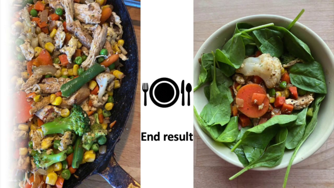 1/2 bag of frozen vegetables (green beans, carrots, broccoli, cauliflower) (Use the amount of a big deep plate if you want to use your own vegetables… remember to cook them before using them to the dish)