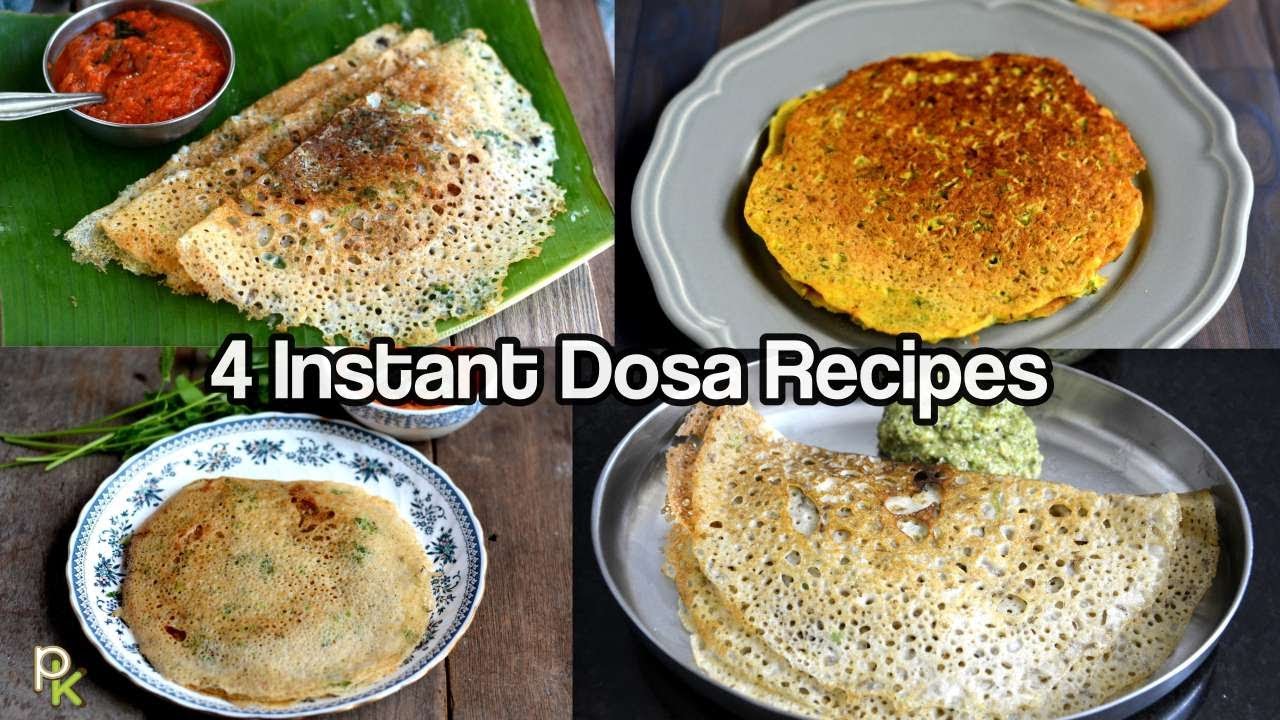 In this video, we will see 4 instant dosa varieties. These dosas can be done instantly-no soaking or grinding or fermenting required. I have shared with you Wheat dosa, Besan dosa or besan ka cheela, rava dosa which I call 123 dosa to remember easily and oat dosa. Not only are these dosas easy to make, they are also healthy. When you run out of idli, dosa batter, these instant dosas recipes come in handy. Do try and leave your feedback in the comment section.