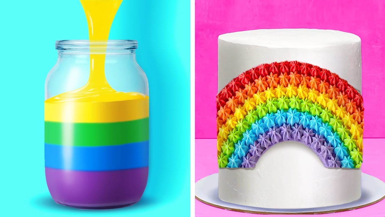 00:09 Rainbow cake decoration idea
