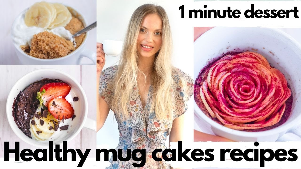 3 diffrent healthy mug cake recipes for you to try as a 1 minute dessert which is vegan and gluten-free/super easy to prepare and very delicious healthy treat ideas