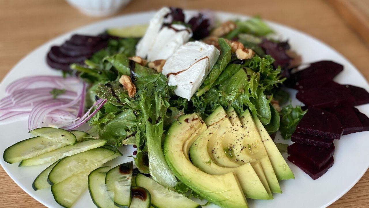 Roasted Beet Salad with Goat Cheese and Walnuts is a healthy and flavorful lunch or dinner option. You can add roasted chicken or any other protein. Roasted beet s are sweet, goat cheese creamy and walnuts add crunch. Perfection!