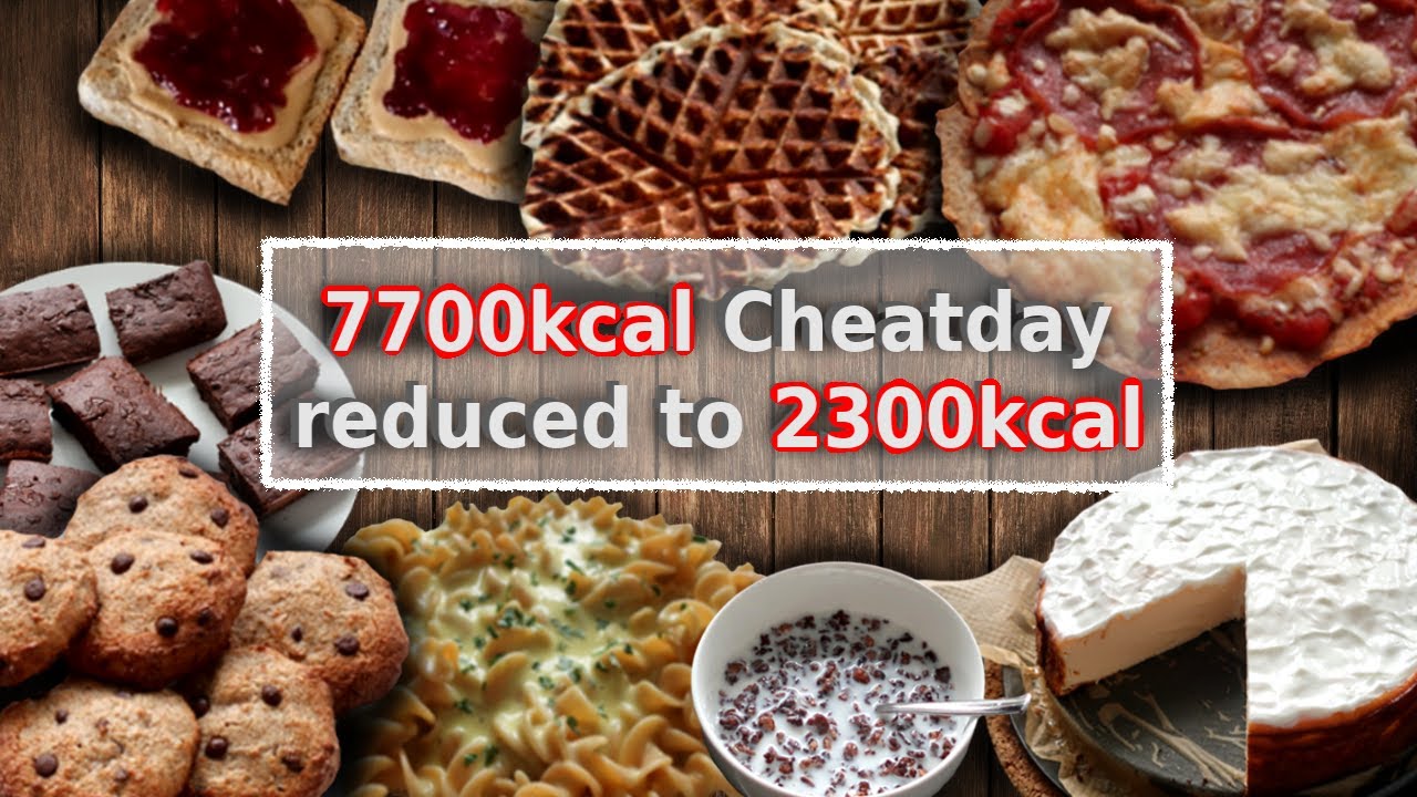 I recreated my 7700kcal Cheat Day with low calorie high volume recipes. I ate the same meals but with completely different nutritional values. I was able to reduce the total calories to only 2325kcal which is a normal amount of calories for me.