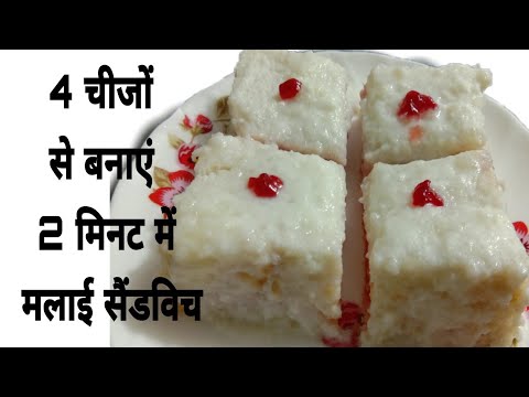 Pehle hame 3 bread lene hai 1 bread par hame gem lagana hai. Dusre bread per hame butter lagana hai. Dusre bread ke do no side butter lagana hai. Teesre bread per hame firse gem lagana hai. Teeno bread ko baraner rkhna hai. 1 mint ke lye firge me rkhna hai 1 mint hone per baher nikal lena hai. Mai me hame chini mila ker bread par lagani hai. Firse hame frizer me kh dena hai. 5 mint ke bad hame nikal lena hai. Malai sandwich ban kar tayar hai.