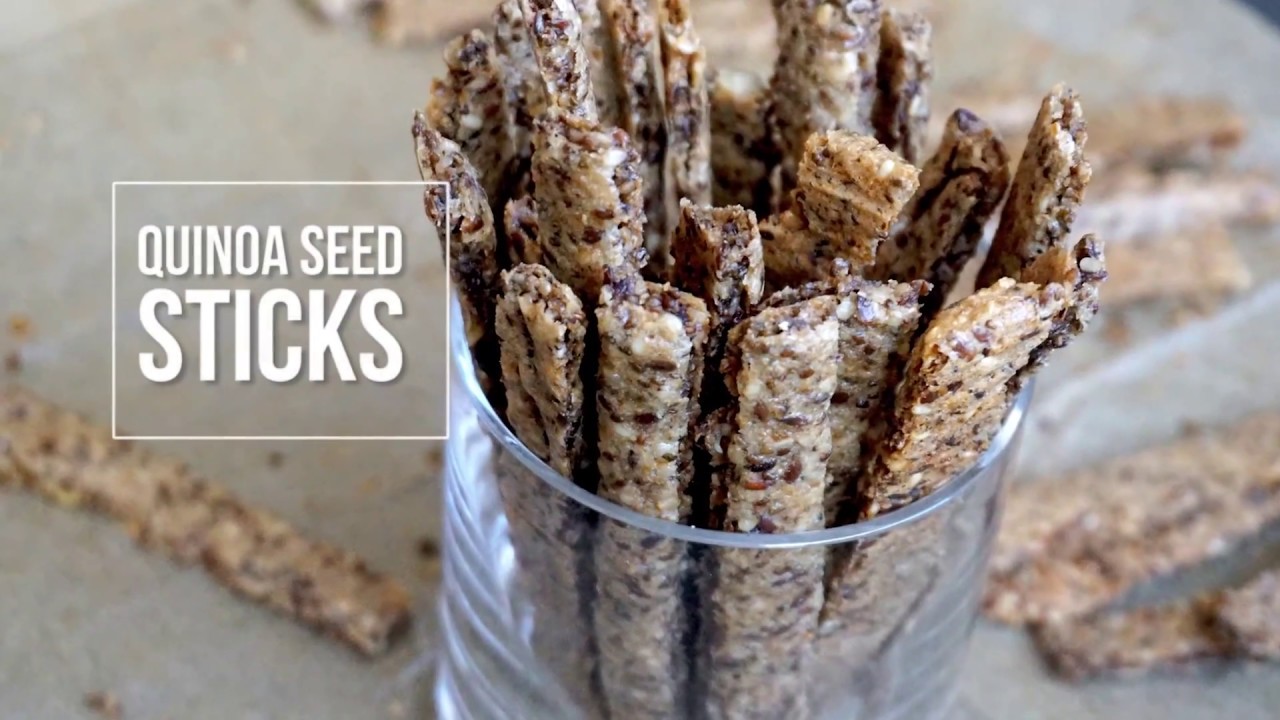 Quinoa breadsticks with seeds – a healthy gluten free, dairy free, egg free snack made with whole real ingredients. Looking for a quinoa snack recipe or maybe some quinoa crackers? These quinoa sticks are great as a healthy snack (by themselves) or eaten with salads, dips or soups.
