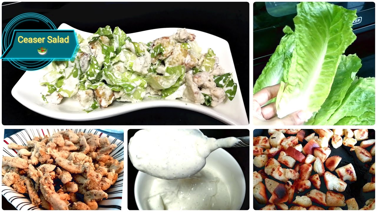 Ceasar Salad is a healthy rich salad with delicious soft and juicy chicken and a creamy ceaser dressing assembled with some fresh romaine lettuce and olive toasted crispy croutons.