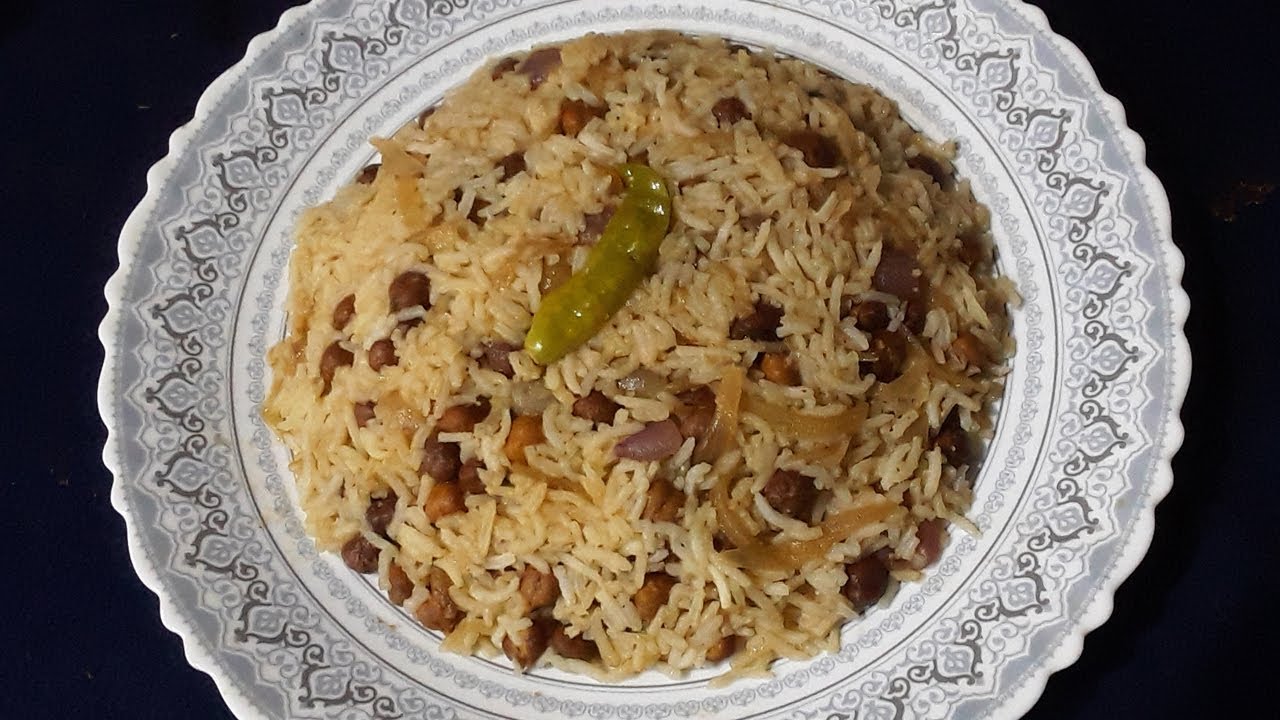 Take 400 ml of water and put in the washed and soaked Chickpeas,salt and 2 spoons of Garam masala and cook for 60 to 90 minutes. Add Water sparingly if necessary .Boil two and a half cups of water and add 5 ml of oil , salt and washed and soaked rice . Cook for 15 minutes. Heat a pan and pour in 10 ml of oil. Put in the shallot pieces and onion pieces and saute till the shallots lose their pinkish color . Add the green chillies and saute well. Squeeze in the juice of 1 lemon . Add salt and saute well for 6 to 8 minutes. Add the prepared Chickpeas and mix well. Add the prepared rice little by little and mix well. Take off the flame and serve