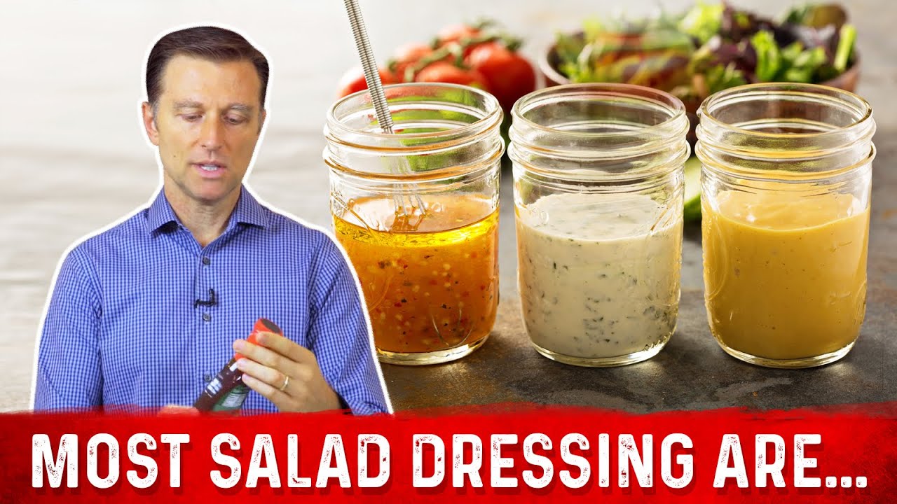 Dr. Berg talks about salad dressing and the challenges with finding a good one. You want to avoid soy oils, corn oil, canola oil and cottonseed oil. I also want a dressing with the least sugars possible. The other point is the taste, as many dressings have too much water and not enough oil. You also want to balance our your omega 6 oils with omega 3 oils. Safflower, sunflower and of course soy and corn are all omega 6, which are inflammatory. So you want to also balance it out with fish oils – cod liver is the best.