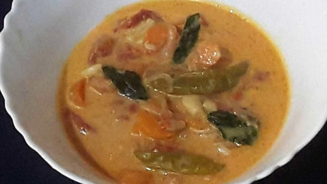 Heat 10 ml of oil in a pan. Put in the pieces of an onion and 8 shallots and saute till golden brown. Add 25 gms of garlic and 25 gms of ginger and saute well. Add the pieces of 200 gms carrot cut into pieces and saute well. Add the pieces of two tomatoes and 2 green chillies and saute. Add salt to taste and mix well. Add 250 ml of coconut milk and mix well. Cook the mixture for 20 minutes. After 20 minutes take off the flame and serve