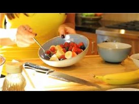 Gourmet breakfast fruit salad is a great, healthy way to start your day off the right way. Make gourmet breakfast fruit salad with help from a registered dietician in this free video clip.