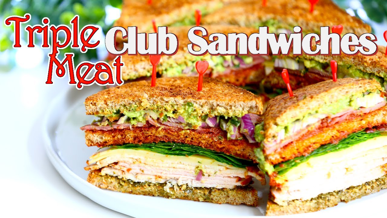 This triple-meat sandwich is packed with flavor! Made with a healthy, toasted, sprouted grain, bread and three different spreads, this double layer sandwich is great for lunch, with a side of soup or fresh salad.