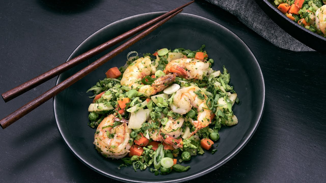This healthy stir-fry subs in riced broccoli for a fast, flavorful, low-carb dish that’s high in protein & fiber. Try it with a fried egg!