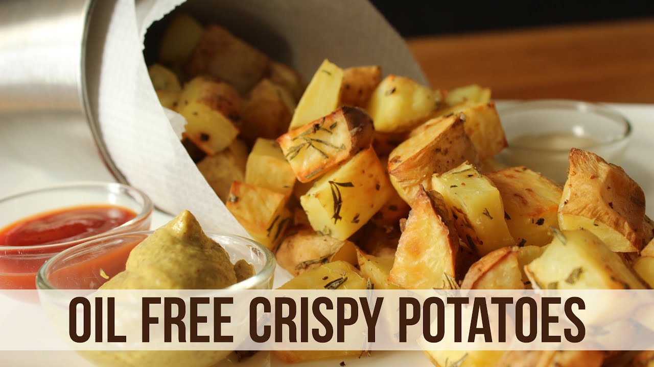 Today we’re making a very healthy side dish for your burgers, sandwiches and wraps and we’re showing you a brief intro on how to cook without oil. We’re making oil free crispy potatoes! There’s no reason why you need to skip on that scrumptious side of crispy ‘fries’ if you’re trying to eat healthier. These are choc full of flavor with some delicious herbs and they make the perfect side for almost anything! We even love adding some to salads for a nice change in texture. One more great thing about this one? There’s no measuring required!