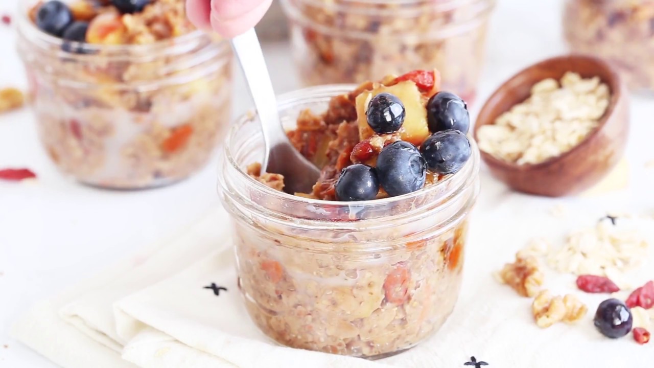 Superfood Instant Pot Oatmeal in a Jar! A healthy breakfast meal prep recipe that’s also portable! This 10 minute electric pressure oatmeal recipe is filled with superfoods; such as gluten free rolled oats, apples, walnuts, flaxseed, goji berries, and more. A wholesome breakfast made easy in a multi-cooker with slow cooker and stove top options. Vegan friendly.