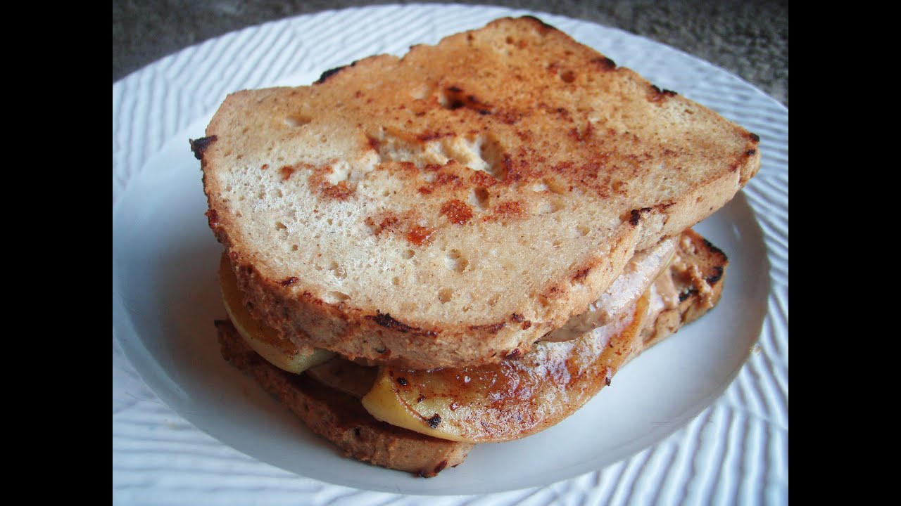 As most of my sandwiches start off, I use the toaster oven. Once the toast is defrosted, I transfer it to a large pan that has been coated with coconut oil. I will brown the bread some more to give it some color, and extra flavor of course! Meanwhile, I have cinnamon sprinkled apple slices doing the exact same. Once the bread and apples appear to be cooked to my liking, I will remove the Paleo Bread and slather on some almond butter. Then, carefully remove the apples, and place in the almond butter coated slices. Tada!!!!!! Very simple, healthy, and tasty too!