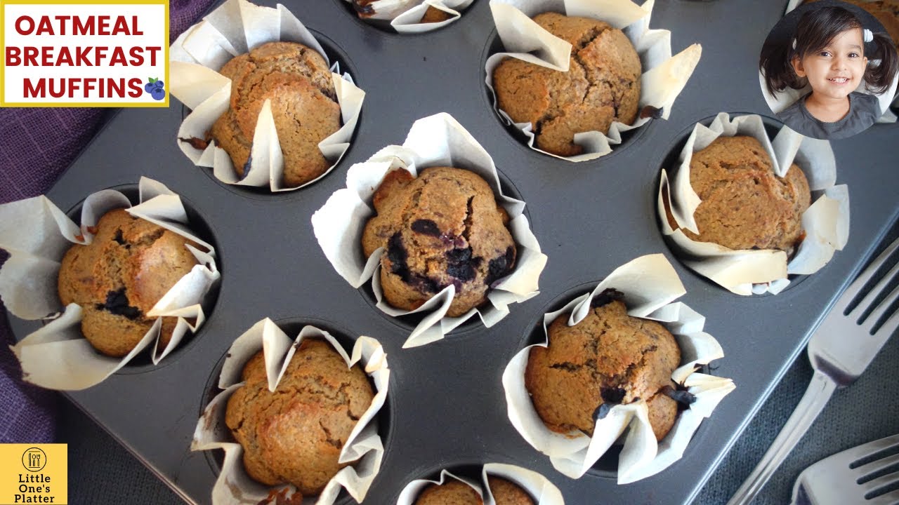 Easy Eggless Breakfast Muffins Recipe | Healthy Oatmeal Blueberry Flax seeds Muffins