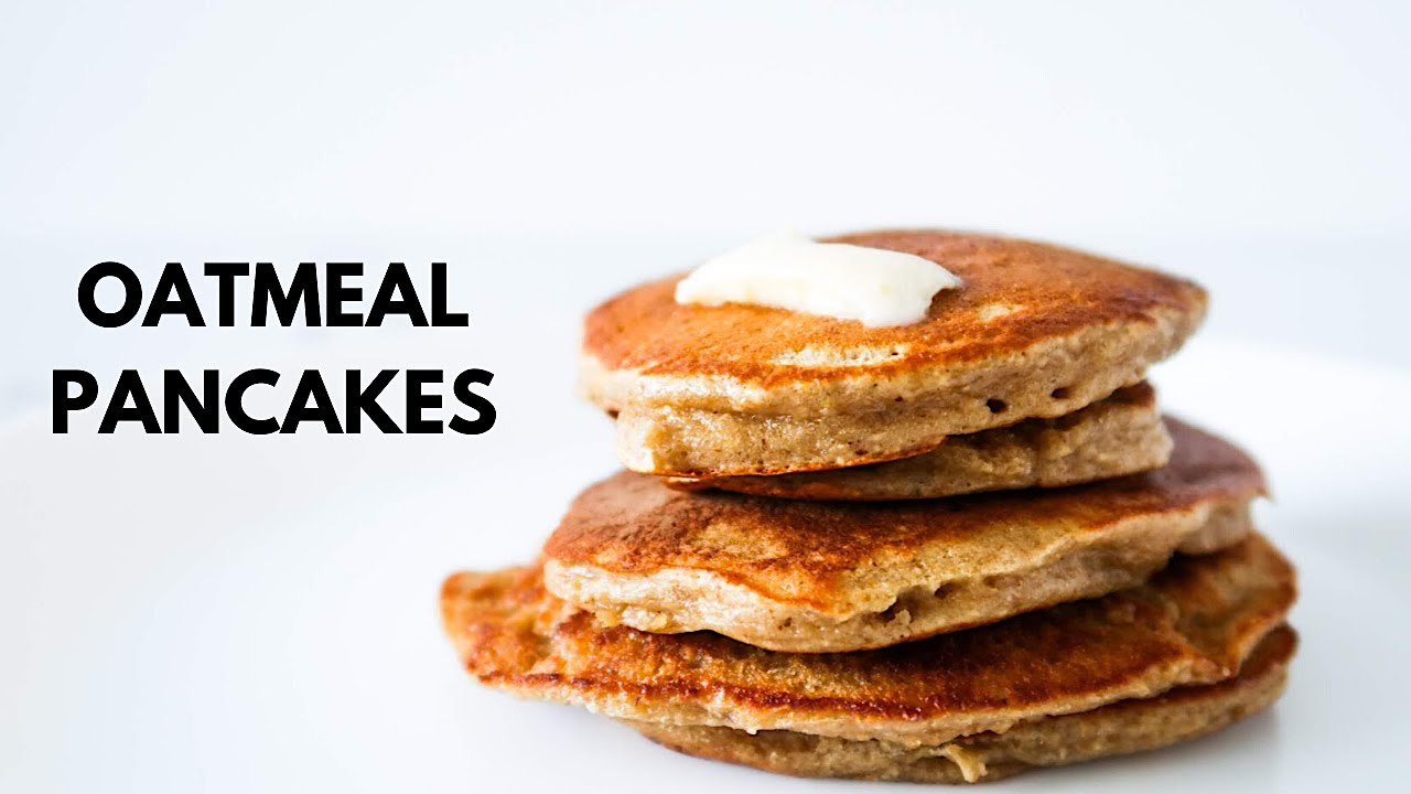Learn how to make oatmeal pancakes without banana with this easy healthy pancake recipe! These delicious oatmeal pancakes are flourless and ready in 10-15 minutes – perfect healthy breakfast!