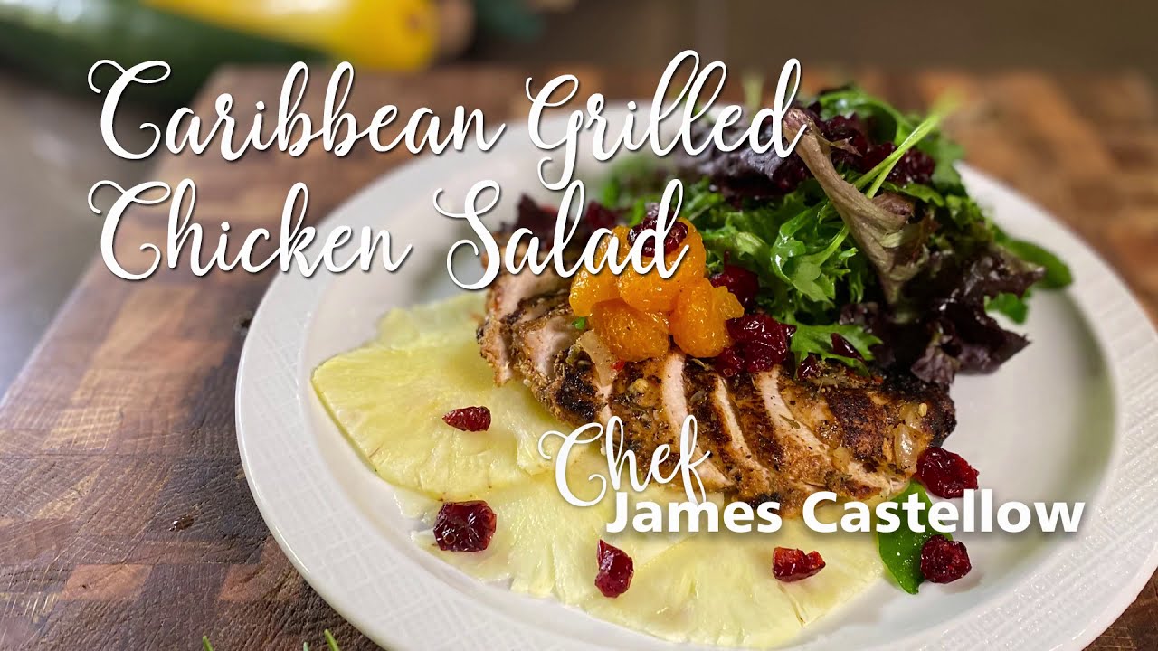 Learn how to make Caribbean Grilled Chicken Salad from UNC REX Chef James Castellow. caribbeanchickenCuisineGrilledhealthyHealthy Cuisinehealthy recipesreciperecipesREXsaladVideoVlogYouTube