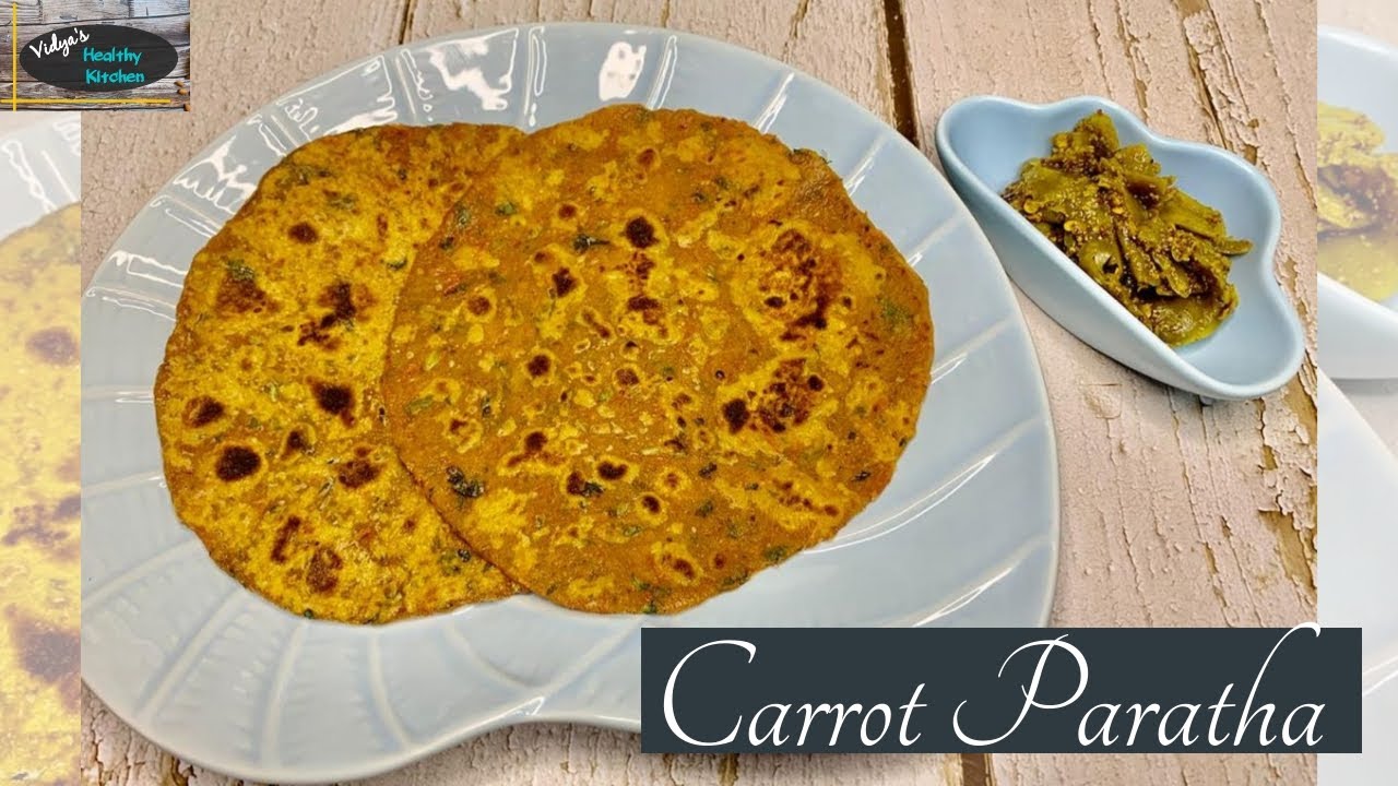 Healthy Carrot paratha made with pudina and coriander leaves & other aromatic spices, less oil and ghee! Quick and easy recipe for breakfast, dinner. Healthy tiffin box idea. Gajjar ka Paratha.