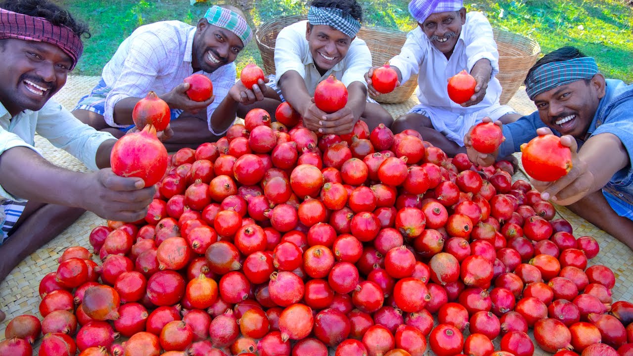 Today we make Pomegranate Juice by using 100 KG fresh pomegranate fruit. We cut and open all the pomegranate and then we make sweat milk to make a healthy fruit drink.Finally, we enjoy the healthy fruit juice with a palm leaf. The taste is Yummy! 100KGBreadBread IdeasBread RecipesCuisinecuttingdrinkfruitfruitsfruits juiceshealthyHealthy BreadHealthy Bread IdeasHealthy Bread RecipesHealthy Cuisinehealthy drinksHealthy Ideashealthy recipesideasjuiceMakingPomegranatepomegranate juicepomegranate recipesrecipeVideoVillageVlogYouTube
