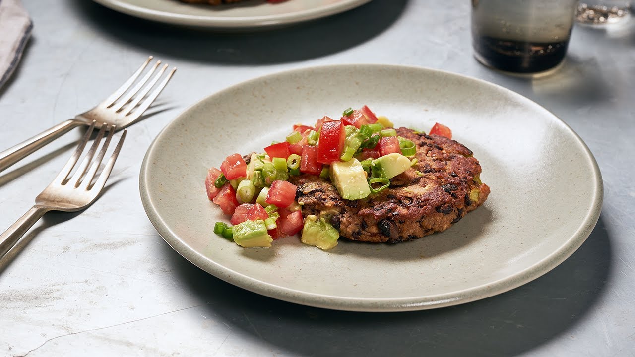 CHIPOTLE BLACK BEAN BURGERS WITH AVOCADO SALSA