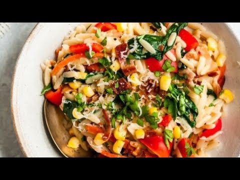 Spinach Garlic Parmesan Orzo with Crispy Bacon