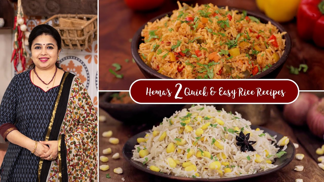 Hema’s 2 Quick & Easy Rice Recipes | Mexican Rice | Corn Pulao | Lunch Recipes | Veg Lunch Recipes | Pulao Recipes