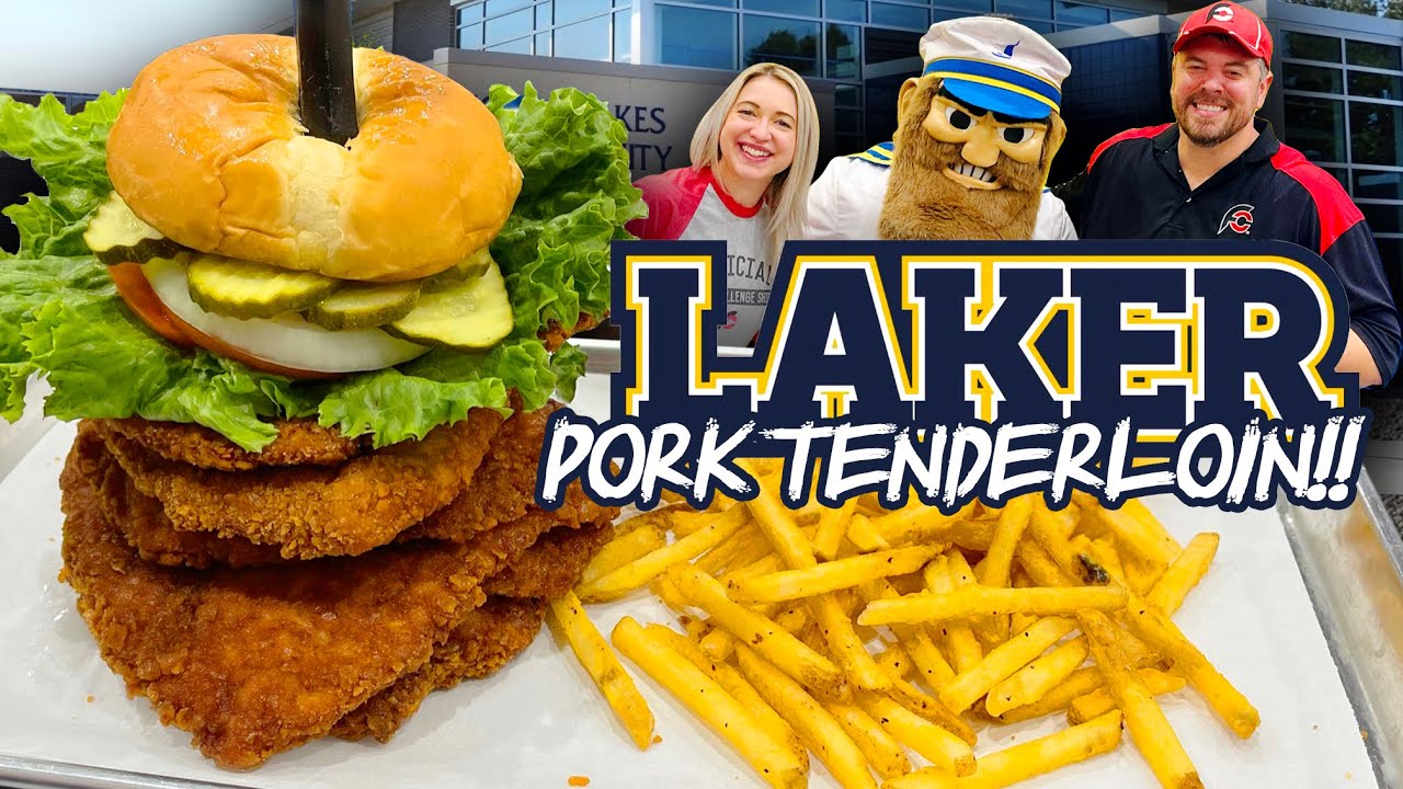 A&Z #975 – Randy Santel and @Katina Eats Kilos each vs the “Laker Loin” Giant Iowa Pork Tenderloin Sandwich Challenge hosted by Iowa Lakes Community College at their Emmetsburg, Iowa campus!! A few weeks after finishing my 2-month Florida Tour with @Katina Eats Kilos, I started a Midwest USA Food Challenge Tour. For event #2, Katina joined me in Emmetsburg, Iowa so we could help kick off the new “Laker Loin” Iowa Pork Tenderloin Sandwich Challenge for the Hotel & Restaurant Management Program of Iowa Lakes Community College which has 5 Iowa campus locations. Student Isaac Bruggeman and teacher Dustin Ross attempted the challenge with us, and we each had 30 short minutes to finish six 1/2 pound breaded & deep fried pork tenderloin cuts stacked and topped with healthy vegetables, served with 1 pound of seasoned fries. We were each trying to win our $39.95 meals free plus sweet t-shirts and spots on the future Wall of Fame. BIG thanks to Brandon, Jesse, and everyone with Iowa Lakes Community College for the wonderful food, drinks, and hospitality!! Special thanks also to all the amazing Iowa Lakes students and teachers who came that day to watch and meet us!! We appreciate everyone in Emmetsburg, IA and around Iowa who watches videos and supports our hard efforts!! There are many more Iowa and Nebraska videos upcoming!!