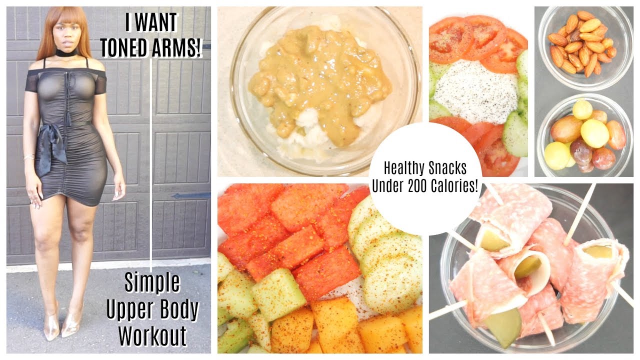 Hey there! This is video 2 of my 6 week toning and weight loss series. Watch me shrink as I give you full updates on weight, measurements, and physique checks. In this video I give you 5 low carb healthy snacks w/ low calories (even dessert) perfect for those dieting down or wanting to lose weight. I also show you a simple at home upper body workout perfect for toned arms, a toned back, and a toned chest.