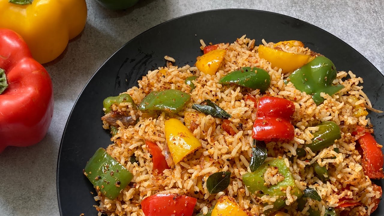 Capsicum rice or bell pepper rice or capsicum pulao is a spicy flavored rice recipe made under just 30 mins. It goes good with curd or simple onion raita. It also has the goodness of vitamin A and C and high fiber.
