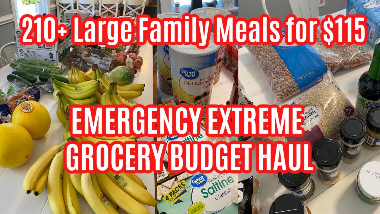 Today I’m sharing a much-requested large family emergency extreme grocery budget haul! So many have asked that I share how to save money on groceries to feed a large family (or any family-size!) on an emergency extreme grocery budget. I’m sharing how I spent $115 to feed my big family of 10 (plus a baby makes 11 🙂 of several adults, teens, middle school ages, elementary ages down to preschooler 210 meals over 7 days. This emergency grocery budget haul is extreme, but hopefully, it’s helpful for families looking to stretch every penny and save money! The next video in this series will be a large family meals on an emergency extreme budget video. I cook and share every large family recipe with these extreme emergency groceries for a week so you can see this extreme grocery budget haul in action!