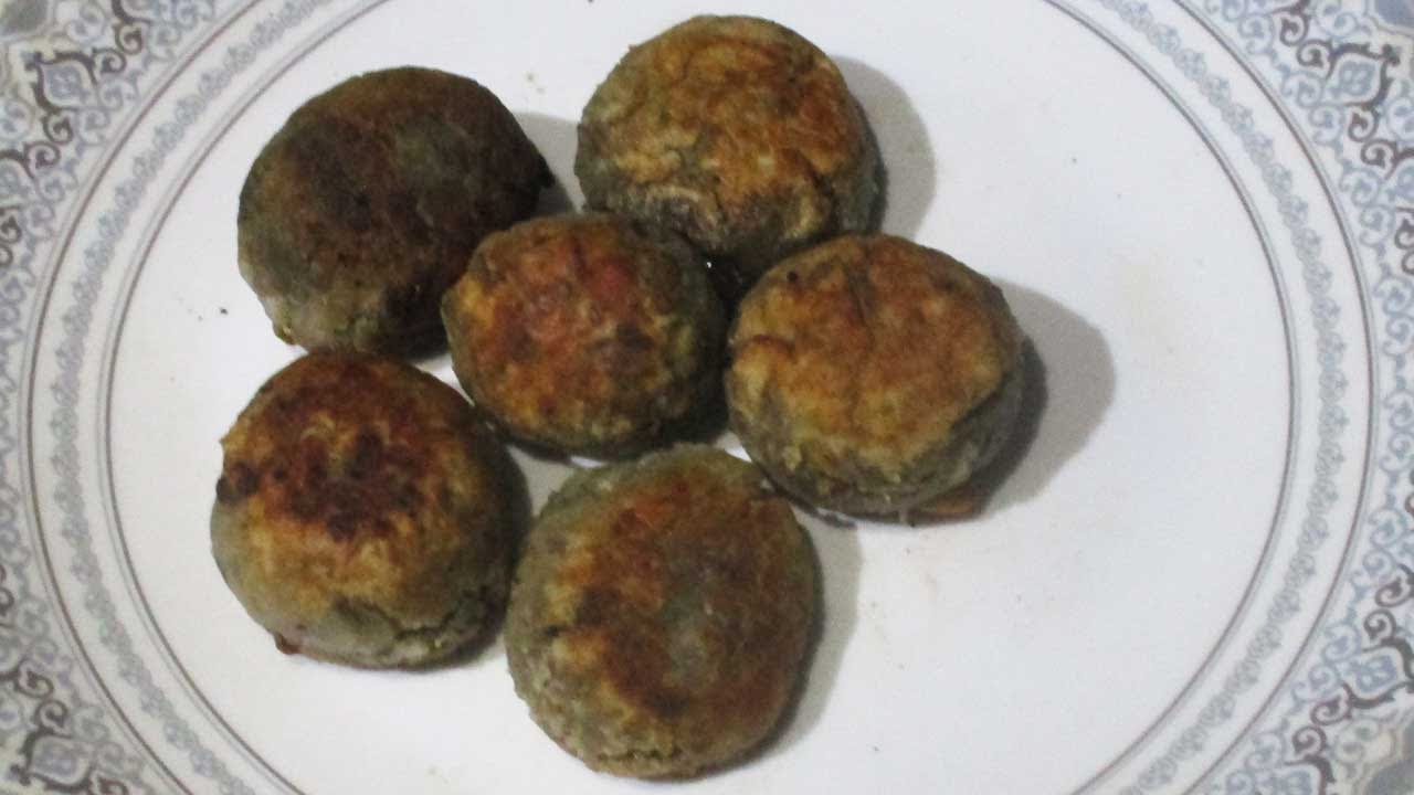 Take 100 gms of mung beans soaked in water for 2 hours and cook in the pressure cooker for 20 minutes with 150 ml of water. Let it cool. Add half a cup of sugar and mix and make it into ball shapes. Coat the mung beans balls with all purpose flour . Heat 60 ml of oil in a pan and put in the balls and fry by turning from side to side until golden brown and take off the pan and serve.