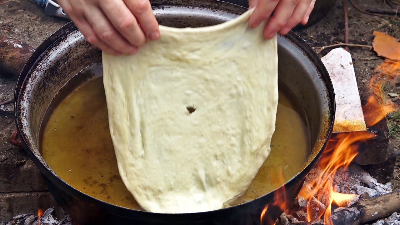 you will like the traditional fried dough made by women in nature, please watch how it is made, Fried dough is a North American dish associated with outdoor food stands at carnivals, amusement parks, fairs, rodeos, and beach resorts. Fried dough is also known as fry dough, fry bread (bannock), fried bread, doughboys, elephant ears, scones, pizza fritte, frying saucers, and buñuelos (in the case of smaller pieces).